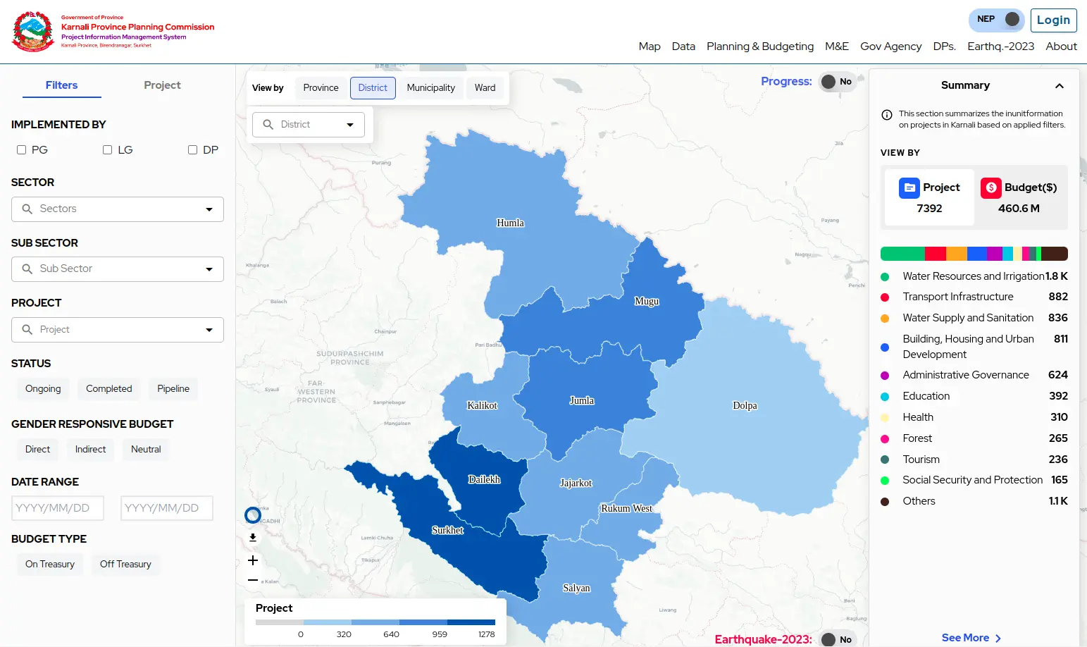 Government-scale project monitoring and expenditure analysis platform for province-wide development oversight.